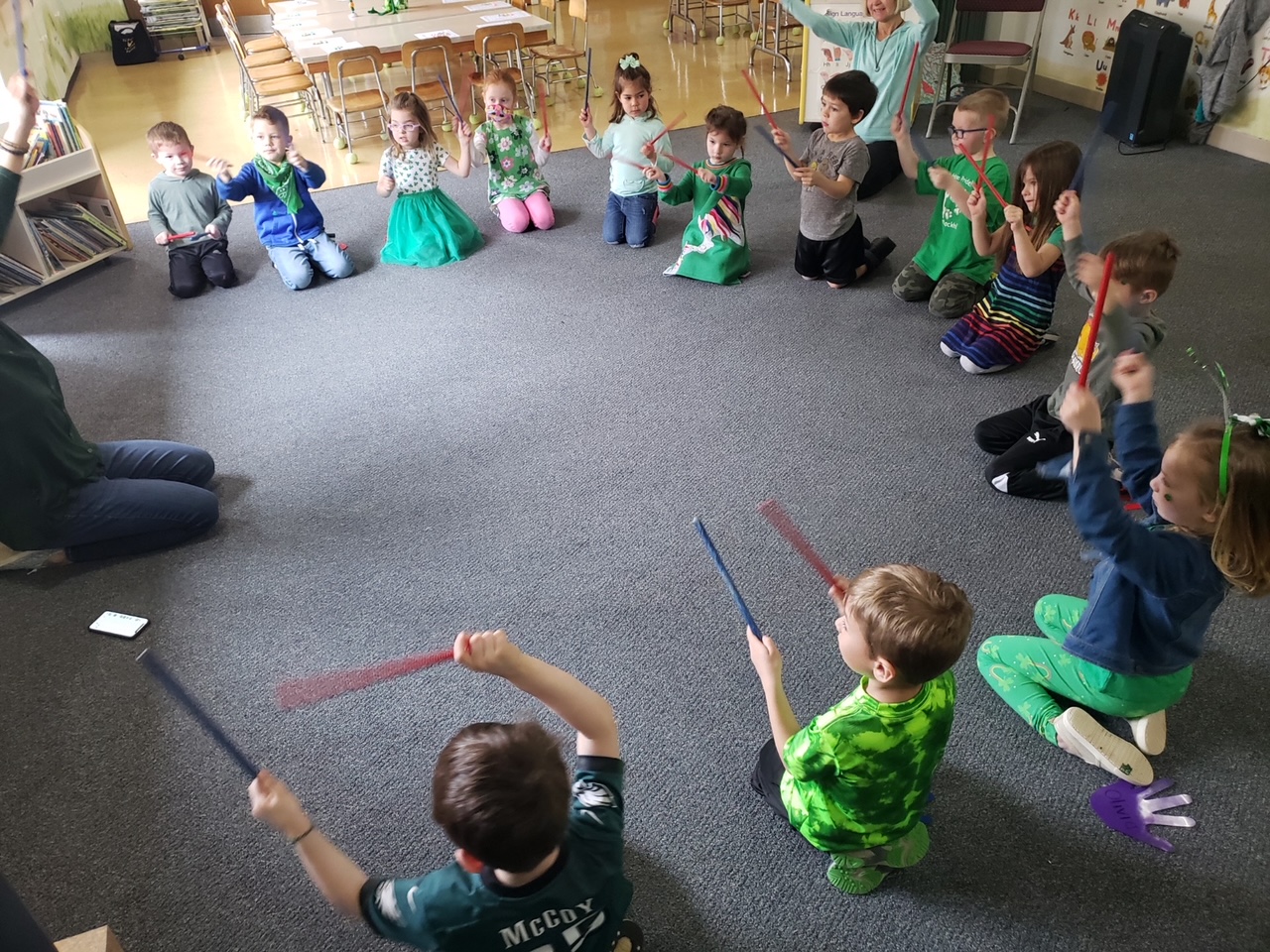 We prepare for and perform 2 music programs during the year, including a Christmas program and Spring program. Music is also a part of our special Holiday celebrations and family nights including Halloween, Thanksgiving, Easter HOP, Mother's Day tea, and PJ night.