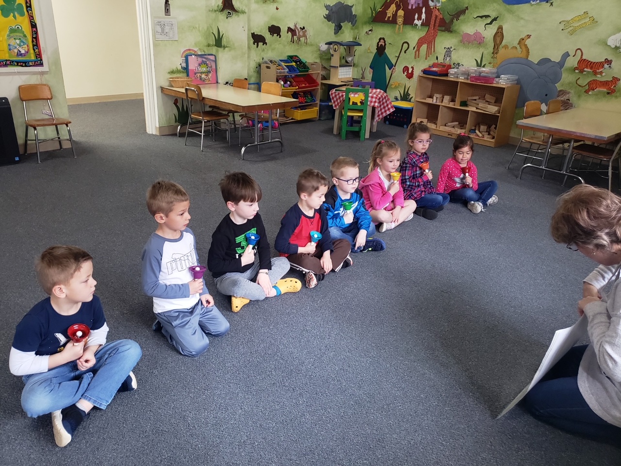 Our musical activities include singing, dancing, playing instruments, intro to hand bells, acting out songs, and learning sign language.